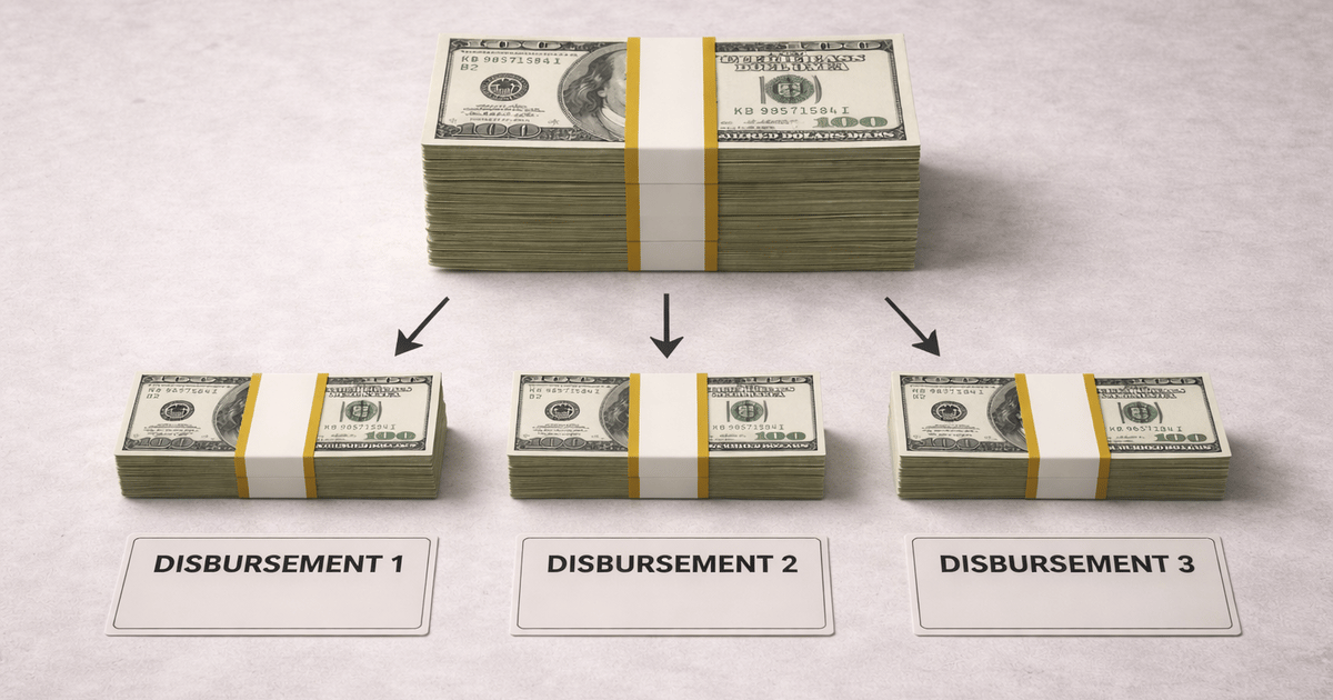 | | Multi-Disbursement Loans and Timing of Proceeds | | Many borrowers focus on the total approved loan amount when planning how funds will be used. However, the approved amount does not always reflect how or when proceeds will be disbursed. | Depending on the use of proceeds, some SBA 7(a) loans are structured as multi-disbursement facilities, meaning a portion of funds will be released over time rather than in a single wire at closing. | This structure can affect how liquidity is accessed and how certain business expenses are funded, particularly during the initial stages of the loan. | Loan Disbursement Structure Depends on Use of Proceeds | The way loan proceeds are disbursed is often influenced by how the funds are intended to be used. Certain expense categories involve timing considerations or documentation requirements that affect when funds are released. | As a result, different components of the same loan will be disbursed at different times, even though the total approved amount does not change. | | | | | Common Uses of Proceeds Disbursed Over Time |
